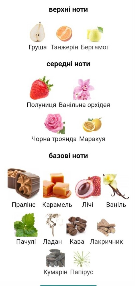 Ноти серця: ванільна орхідея, маракуя, полуниця, чорна троянда.