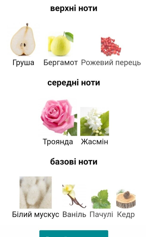 Верхні ноти: бергамот, груша.