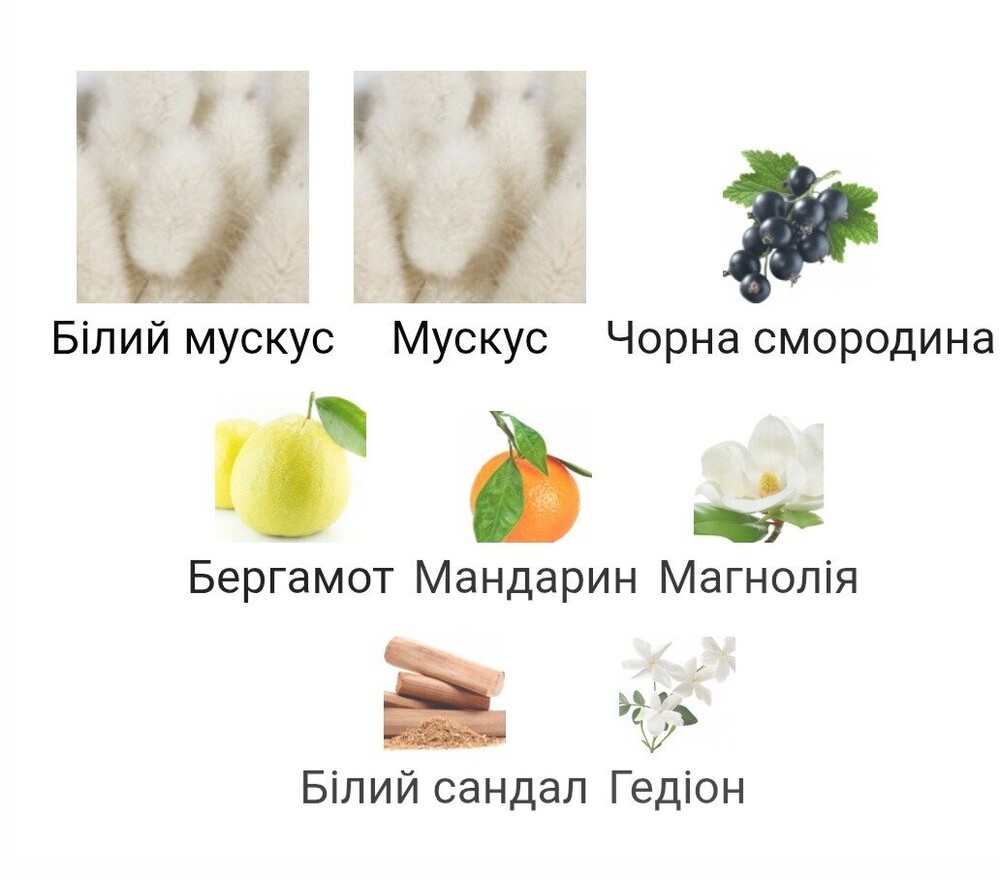Мускуси в цьому ароматі делікатні, роблять його дуже чуттєвим і одночасно не нав'язливим.